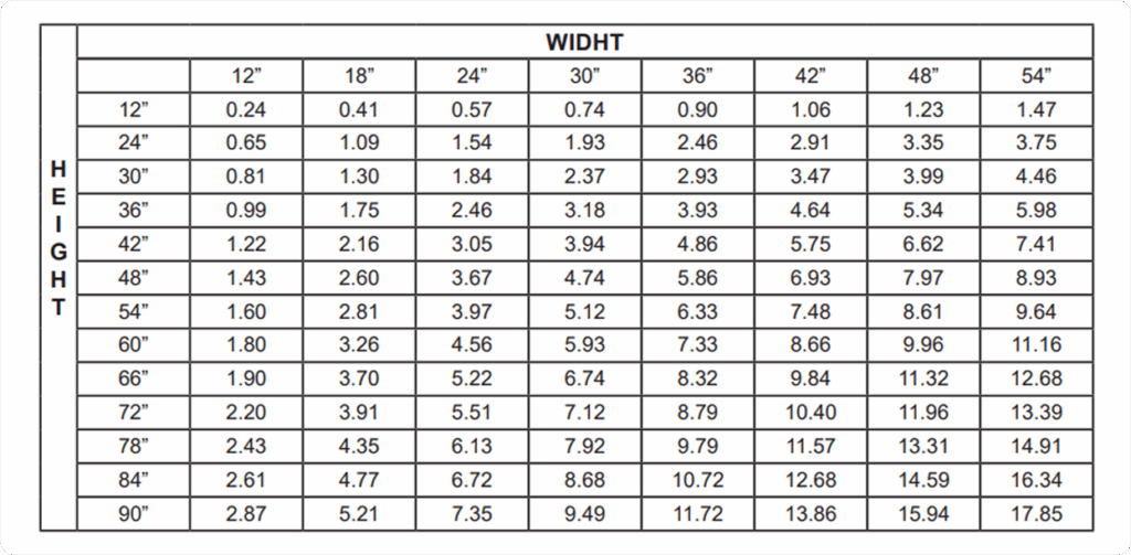 48”x48” Unit: 7.97 sq. ft. free area.
