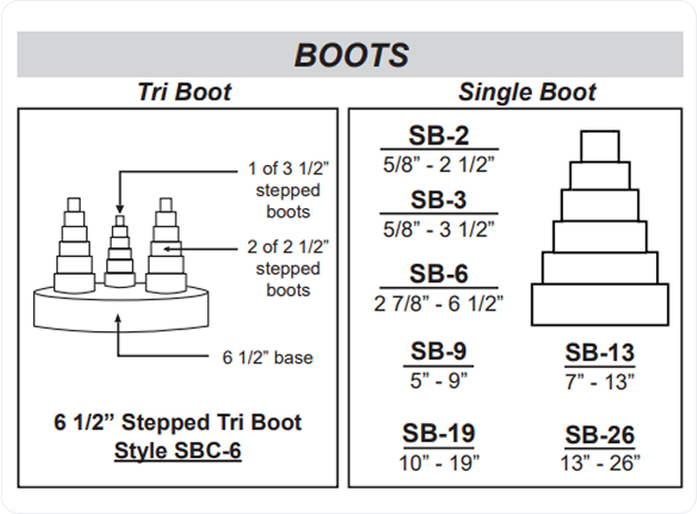 2 - 3/8 - 1” OD Boot and 2 - 1” - 2” OD Boot